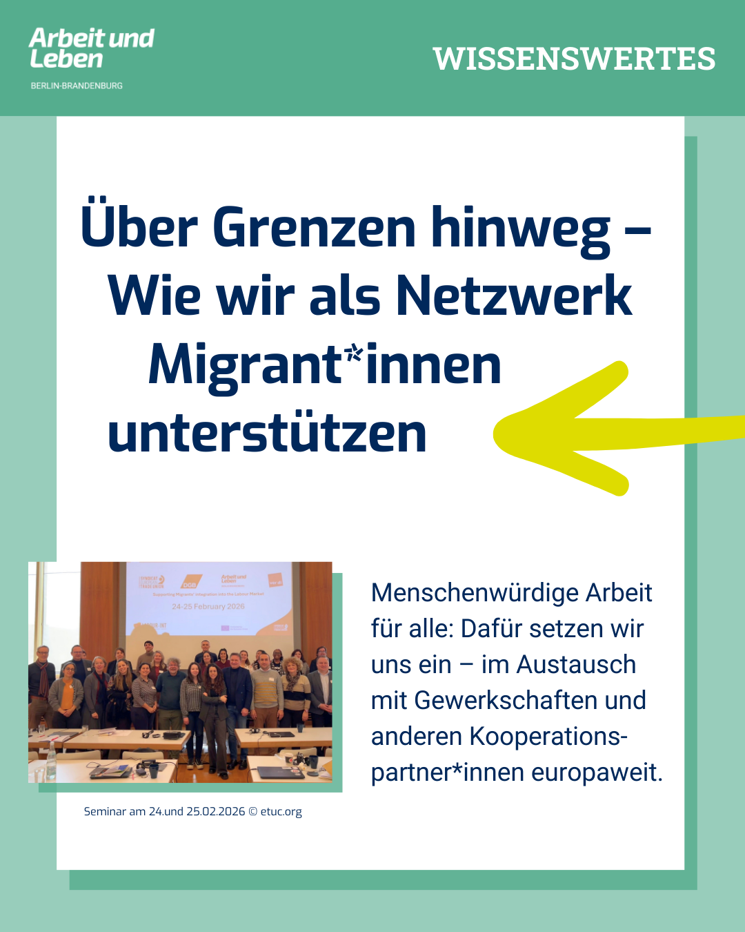 Unser Berliner Beratunszentrum für Migration und Gute Arbeit BEMA legt seine Zahlen für 2025 vor: 6.046 Beratungen für 4.652 Ratsuchende und 208.000€ an ausstehenden Löhnen und Gehältern, die ausgezahlt werden konnten – das ist die Bilanz. Wir danken allen Berater*innen, die dazu beigetragen haben.